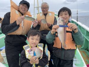 今日もターゲットのハナダイ シロアマダイ イトヨリも顔を見ることが出来ました ゲストはアジ サバ カイワリ アオハタ ソーダと皆さんお土産バッチリで帰港です!