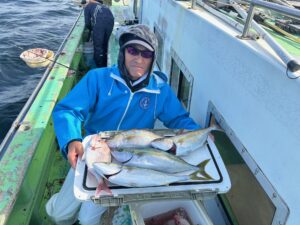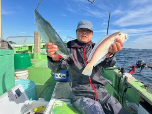 ウィリーアマダイ五目 ハナダイ 0.6~0.8㎏ 0~1枚 アマダイ(シロアマダイ混じり) 21~35㎝ 0~2枚 イナダ 38~45㎝ 0~3匹 カンパチ 35~38㎝ 0~2匹 イトヨリ 28~30㎝ 0~1枚 サバ 28~30㎝ 2~6匹 ソーダ 本ガツオEtc