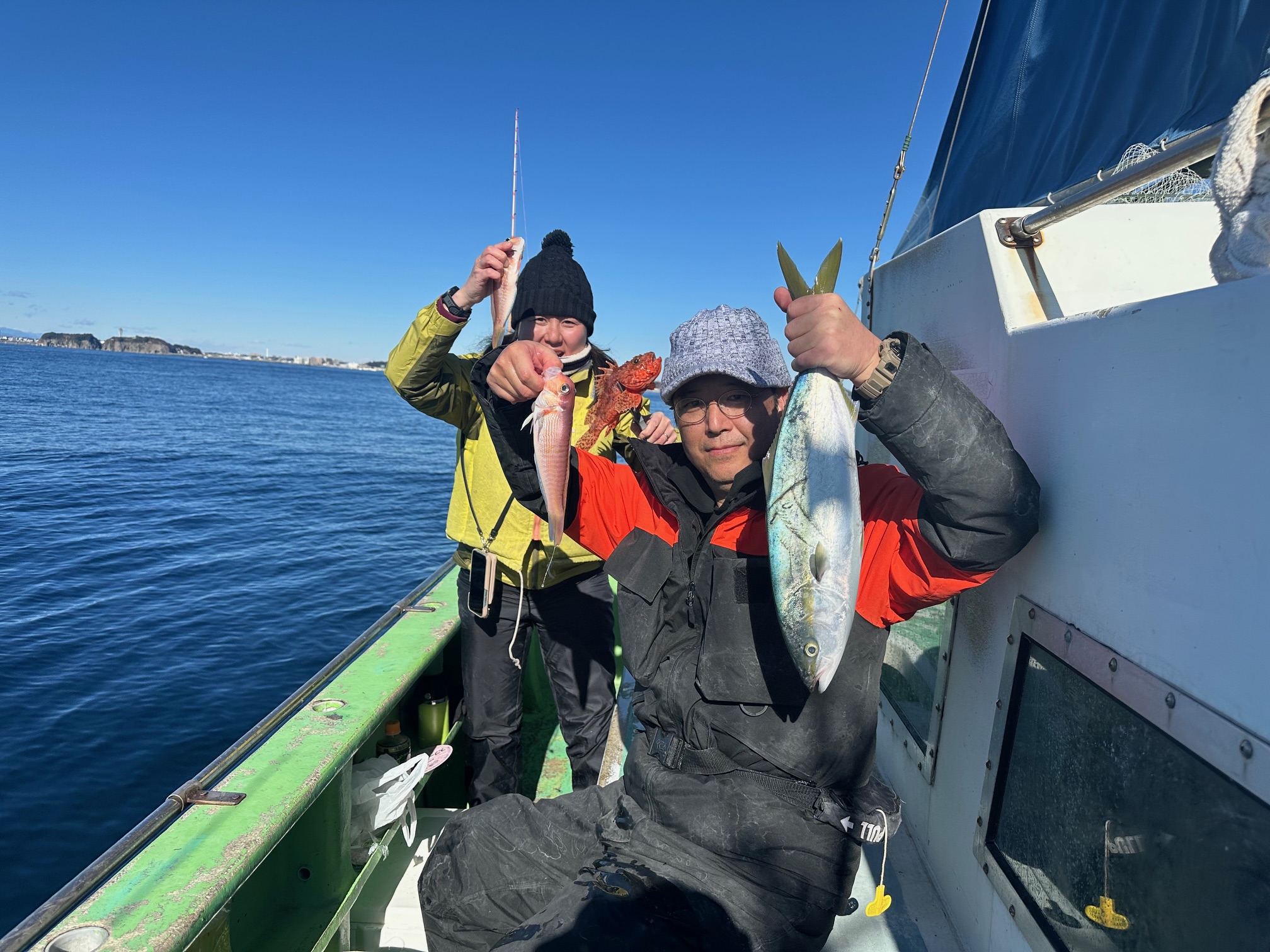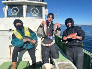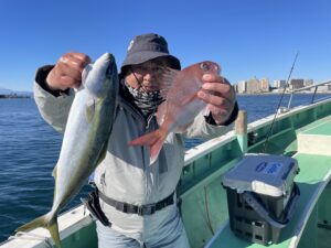 新年初釣りはタイ ハナダイ イナダ 始めアマダイ シロアマダいイ イトヨリ 良型サバと釣果に恵まれ嬉しいしかったです!