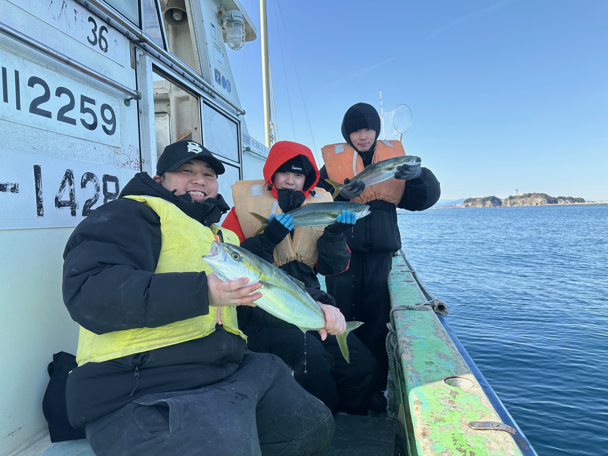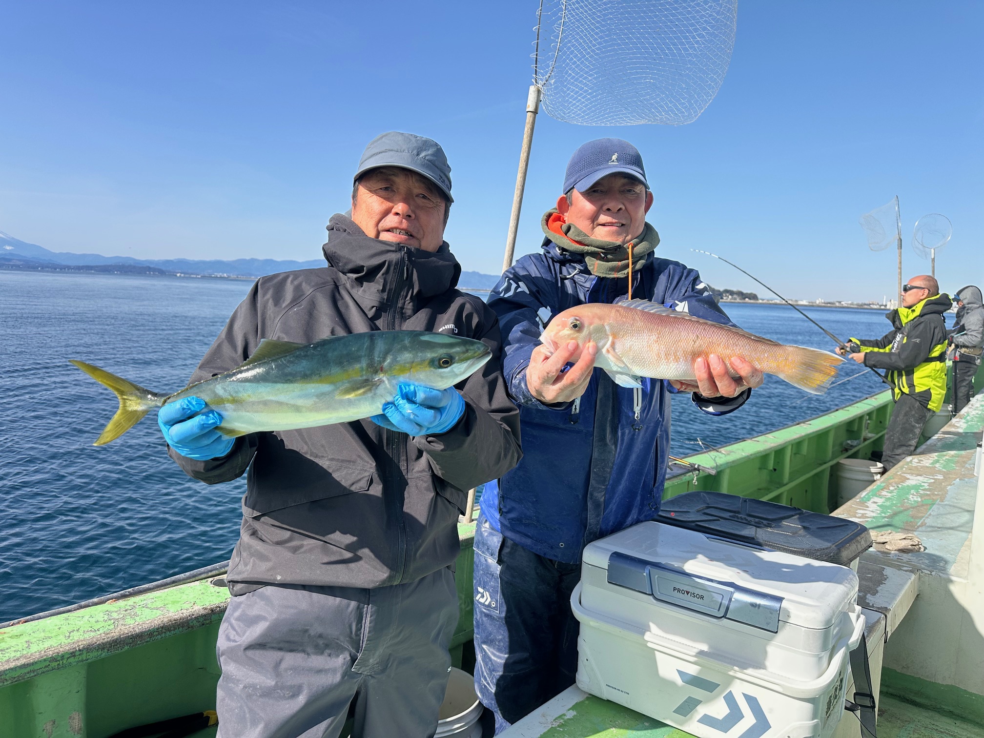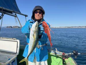 2026年1月26日釣果 2026/01/26 ウィリーアマダイ五目 イナダ 38~50㎝ 2~10匹 シロアマダイ 23~40㎝ 0~2枚 ウマズラ 28~30㎝ 0~1枚 ホウボウ イトヨリEtc イナダの釣果に恵まれて皆さんに楽しんで貰えました 他に良型シロアマダイ ホウボウとお土産バッチリで嬉しい帰港です!