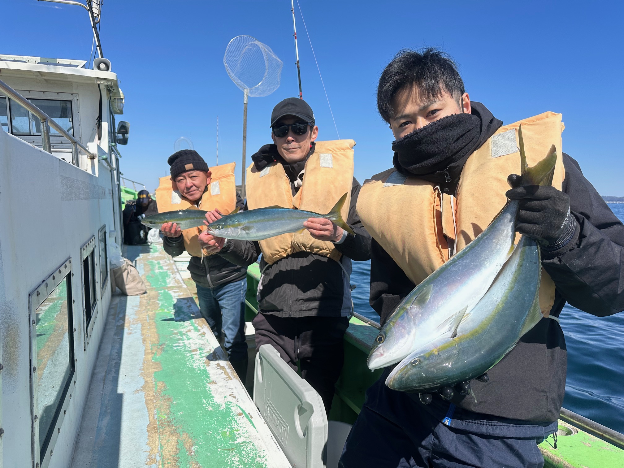 時化つづきで釣果が心配でしたがイナダは全員Getと良かったです 他に良型マダイ アマダイ イトヨリ オニカサゴとお土産キープで帰港です!