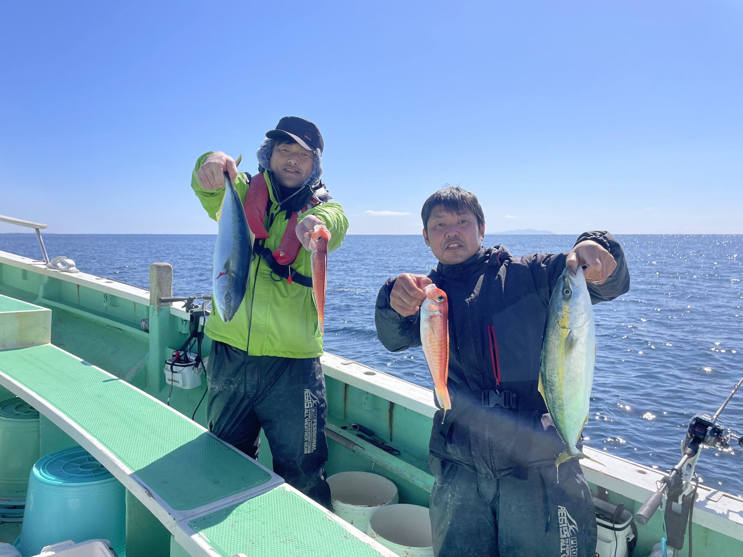 ウィリーアマダイ五目 イナダ 45~50㎝ 1~8匹 アマダイ 23~30㎝ 0~3枚 マダイ1㎏ イトヨリ オニカサゴ ホウボウEtc