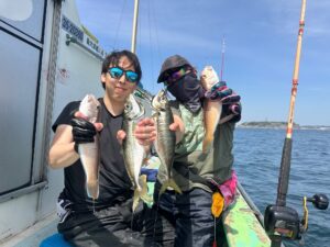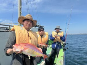 ウィリーアマダイ五目 アマダイ(シロアマダイ混じり) 30~38㎝ 0~1枚 イトヨリ 23~38㎝ 0~3枚 メジナ 0.5~0.7㎏ 0~2枚 アジ 27~40㎝ 0~7匹 サバ 25~42㎝ 2~8匹 クロダイEtc